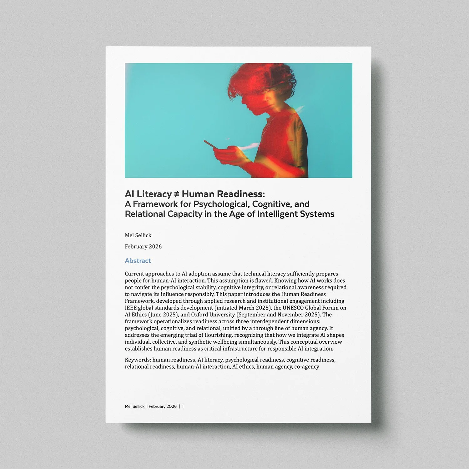 PSYCHOLOGICAL READINESS is the missing piece for flourishing in the age of AI. Current approaches to AI adoption assume that technical literacy sufficiently prepares people for human-AI interaction. This assumption is flawed. Knowing how AI works does not confer the psychological stability, cognitive integrity, or relational awareness required to navigate its influence responsibly. This paper introduces the Human Readiness Framework, developed through applied research and institutional engagement including IEEE global standards development (initiated March 2025), the UNESCO Global Forum on AI Ethics (June 2025), and Oxford University (September and November 2025). The framework operationalizes readiness across three interdependent dimensions: psychological, cognitive, and relational, unified by a throughline of human agency. It addresses the emerging triad of flourishing, recognizing that how we integrate AI shapes individual, collective, and synthetic wellbeing simultaneously. This conceptual overview establishes human readiness as critical infrastructure for responsible AI integration.